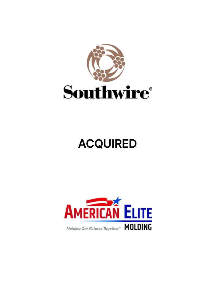 VRA Partners, LLC is pleased to announce that Southwire Company, LLC ("Southwire") has acquired American Elite Molding, LLC ("AEM"), a manufacturer of nylon cable ties. The transaction closed on November 16, 2020. VRA Partners acted as the exclusive financial advisor to Southwire on the transaction. Terms of the transaction were not disclosed.